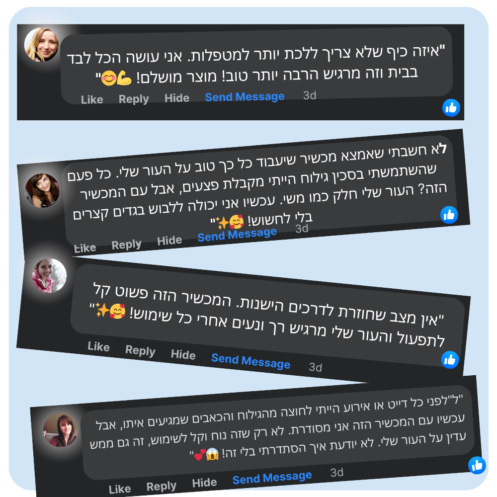 ציינו שהן הפסיקו לסבול מחתכים וגירויים אחרי השימוש במכונה.